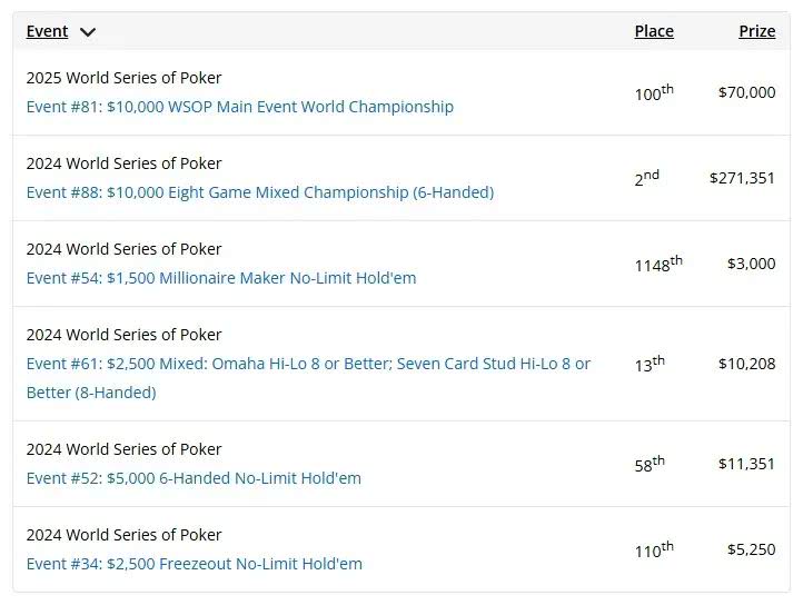 Dai最终止步于Day 7,名列WSOP主赛事第100名,赢得70,000刀奖励。这不仅足够支付此次拉斯维加斯之行的费用,也足以让他明年再度回归WSOP赛场,继续追梦。