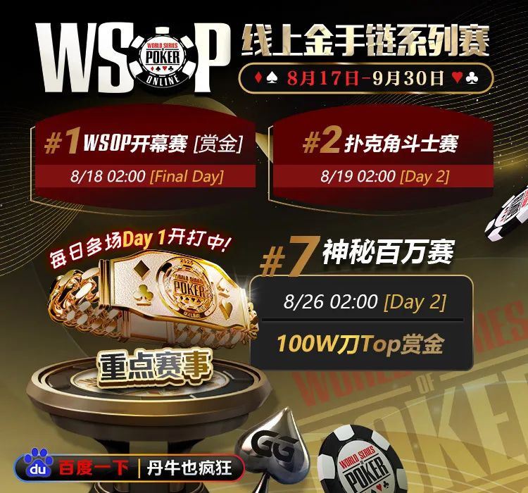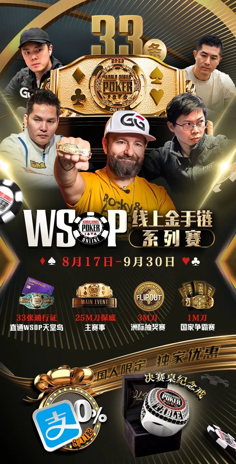 你准备好为金手链而战了吗?2025年最受期待的线上扑克盛典——《GGPoker WSOP线上金手链系列赛》8月17日-9月30日重磅开打,共33条金手链等待颁发!