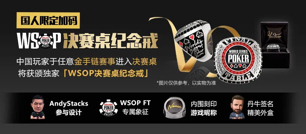 中国玩家于任意金手链赛事进入Final Table,将获颁独家“WSOP决赛桌纪念戒”。
