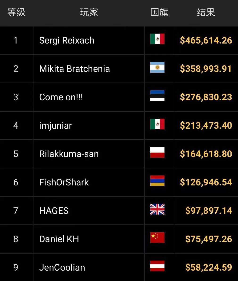 ▌Sergi Reixach:西班牙职业名将,现年35岁,生涯现场锦标赛累计奖励$9,088,331,该国排名历史第五。