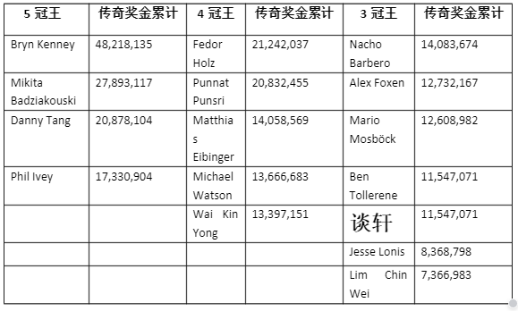 Triton官方定期更新多冠王排行榜,目前领跑的是Jason Koon。