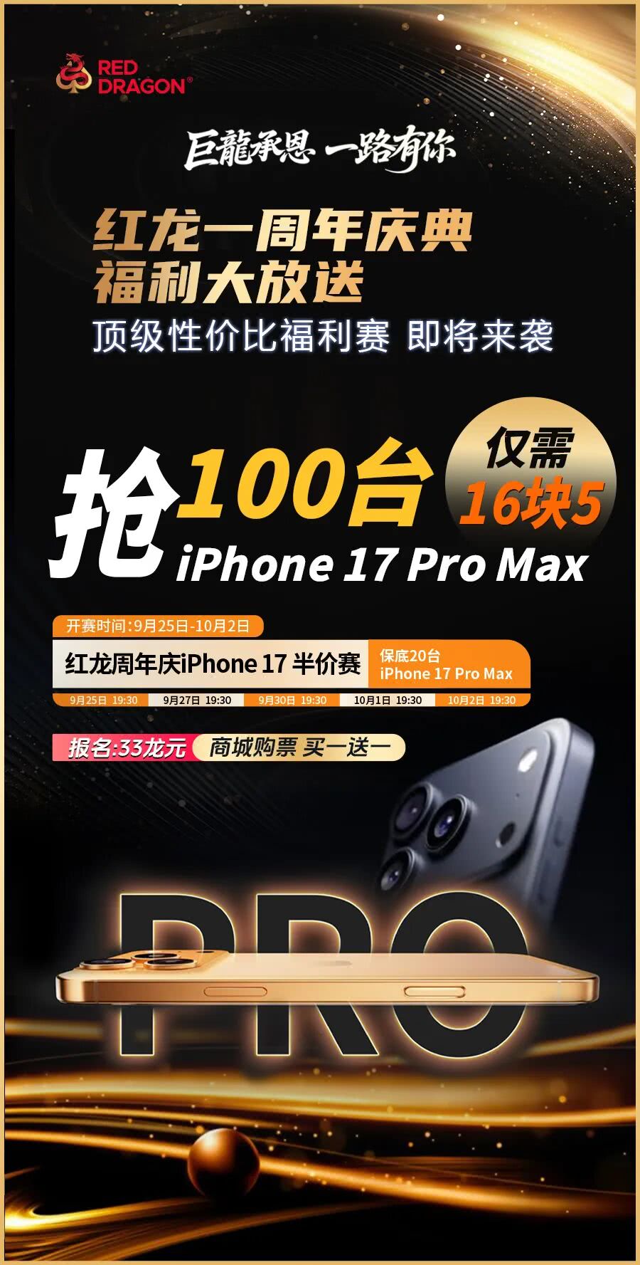 iPhone17今日正式发布 红龙周年庆率先送出100台!