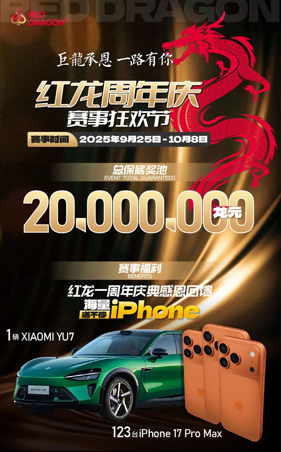巨龙承恩,一路有你! 红龙迎来一周年,这是一个里程碑,更是一场狂欢。为了回馈一路支持的玩家,倾情打造年度最高规格的赛事节——红龙一周年庆典!