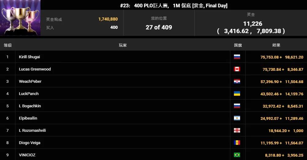 另一边则是奥马哈迷的盛宴WSOP#23: PLO巨人赛,仅用六个半小时就产生了全新的冠军。