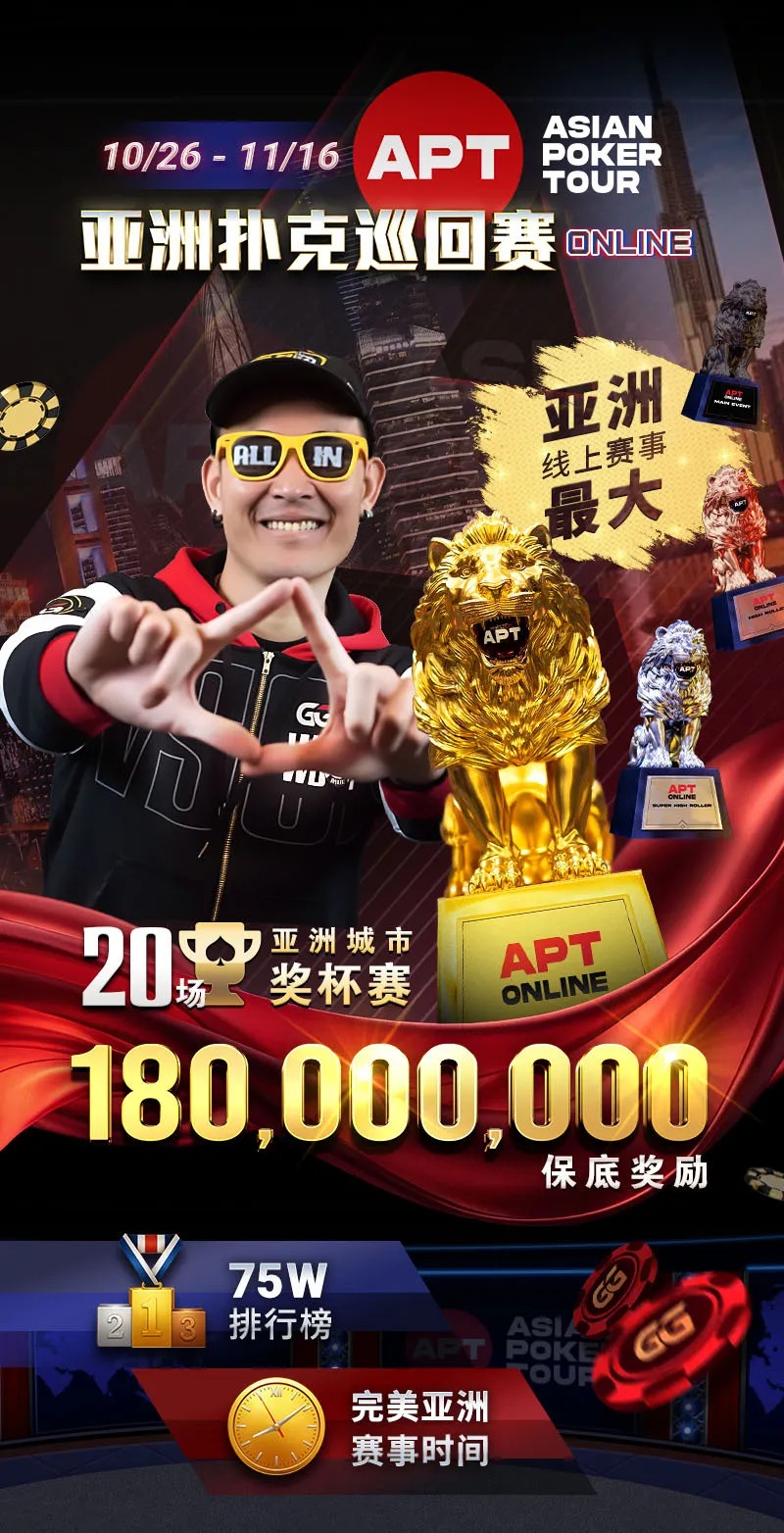 10月26日,《APT亚洲扑克线上巡回赛》再次点燃狮王之争。谁能写下属于自己的荣耀篇章?我们拭目以待!