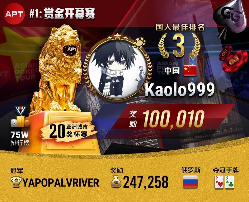最后,本届APT也设有“75万奖励排行榜”,只要榜上有名,即可获得额外赛事基金。
